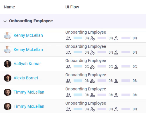 By hovering over the UI Flow Section where the completion percentage bars are displayed next to each form, you can see more detail about the number and percentage of forms completed overall as well as by role.