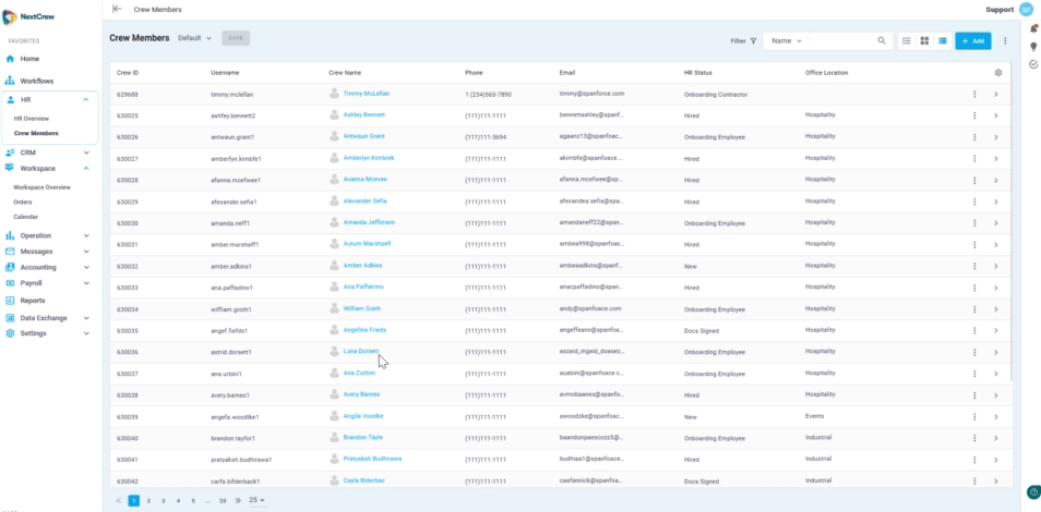- HR: Contains HR-specific information for your Crew Member such as Hire Date, Termination Date, HR Status, Birth date, Social, Office Location, Verification Status and Account Status.